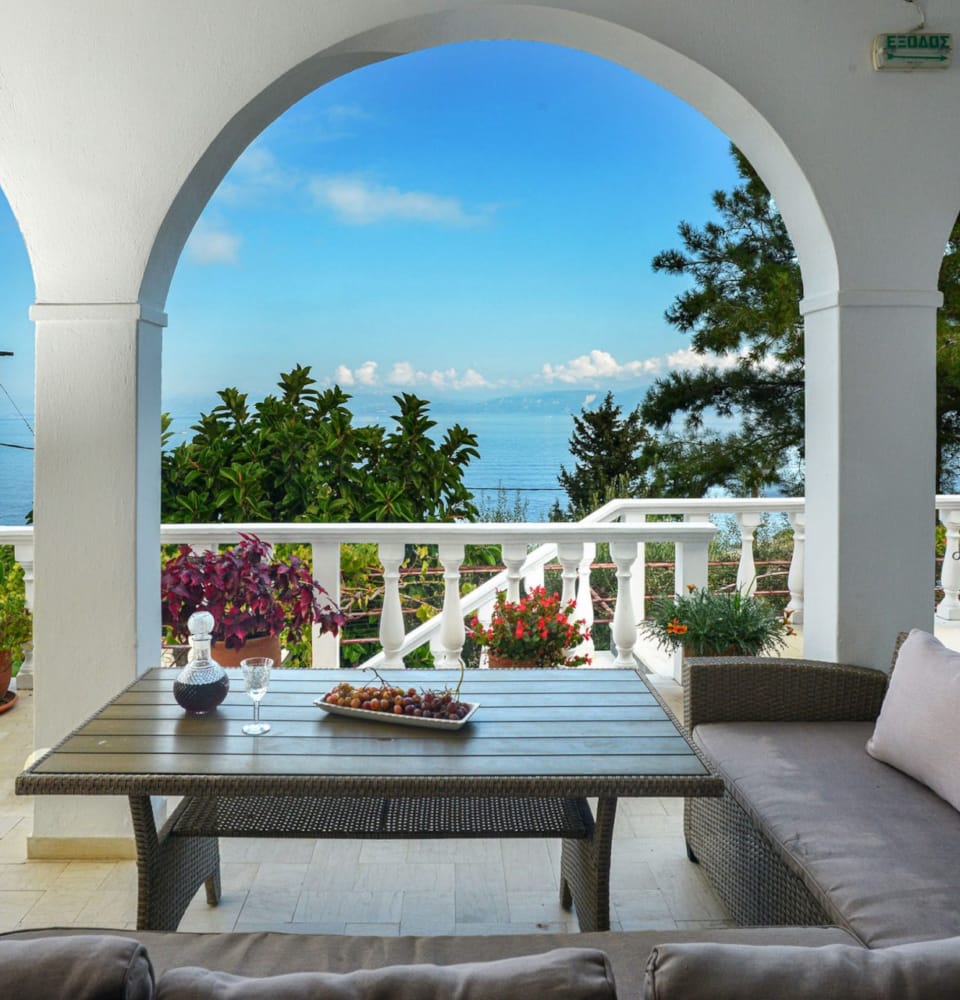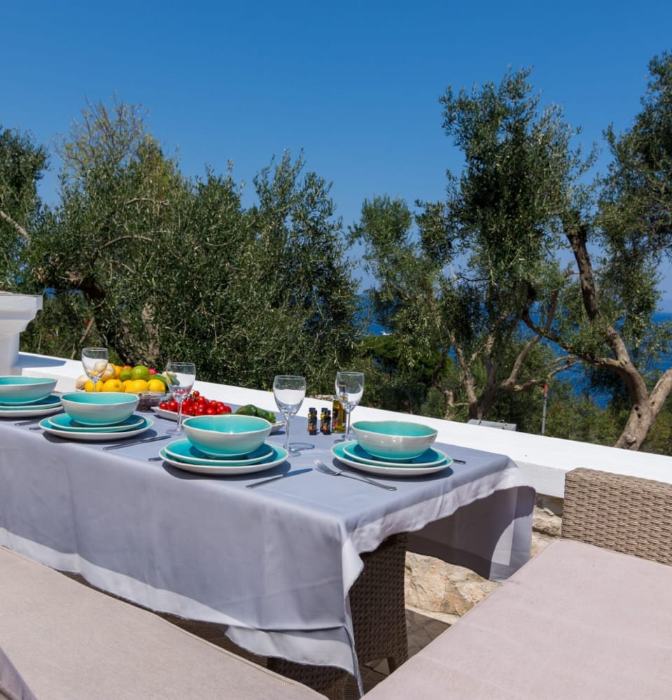 Nostos Villa is an utterly aristocratic property matching both the typical style of Ionian architecture and the simple and clean lines of minimalism. Nestled within a lush verdant hill overlooking the infinite Ionian Sea, this villa is a heaven for all senses.