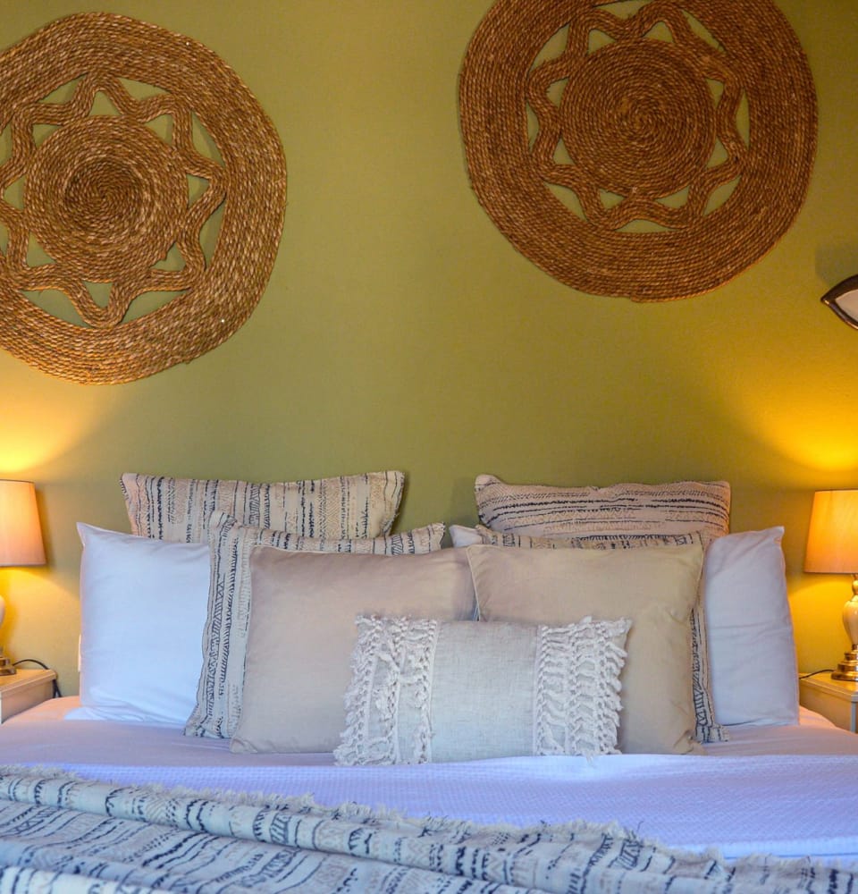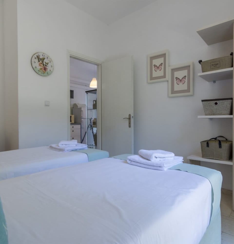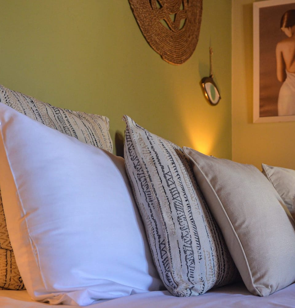Opening at a 100m², the villa features numerous window doors with direct access to the beautiful stone paved veranda with lawn patios. One master bedroom with king size bed, bathroom with Jacuzzi and bathtub, one more bedroom with 2 single beds, en-suite bathroom with shower, can sleep 4 guests in an elegant ambience radiating a relaxing, cleansing aura.